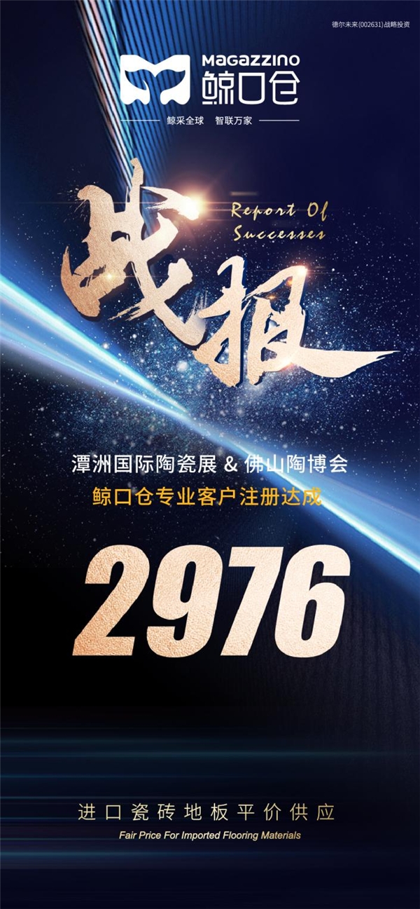 2976!以客戶信任成就數(shù)據(jù)新階段,截至潭洲陶瓷展與佛山陶博會結(jié)束,鯨口倉小程序?qū)I(yè)客戶注冊已突破2976人!