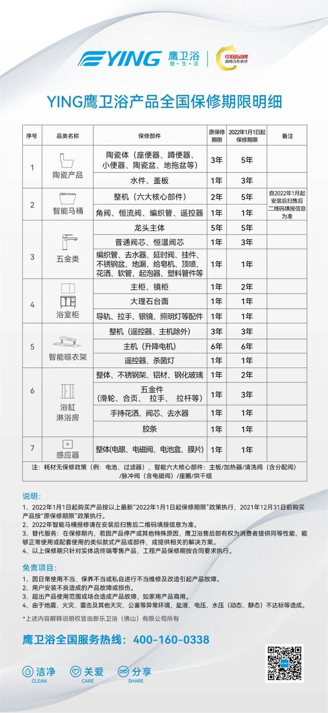 鷹衛浴已對全線產品進行質保升級,延長質保期,帶來更全面的服務體驗。其中,智能馬桶的整機質保服務升級為5年,并推出“智能馬桶安裝提報系統”,通過微信掃碼登記,自動生成產品唯一識別碼,讓用戶買得放心,用得稱心,無后顧之憂。