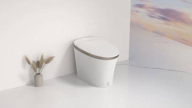 ET520-Q智能馬桶基于入門級智能馬桶極簡化設計的產品定義,摒棄多余的造型元素,采用撞色設計理念,將馬桶蓋外觀進行上下分色,中間裝飾帶既整合了主要的功能按鍵,又達到視覺減薄的感受,同時,裝飾帶有多個色彩選擇,來搭配用戶家中不同風格的浴室空間。