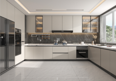 用簡單而克制的方式描繪真實的生活場景,亮面奢石門板在陽光的照射之下,整個廚房空間看起來更加明亮寬敞,整齊劃一的櫥柜美觀整潔,也注重實用性,讓臺面空間得到充分釋放,家電隱匿式設計,極大提升空間可利用率,不僅清爽整潔美觀,還保留了廚房的整體性,活動更加自由。