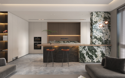 水吧區(qū)以淡雅為主色調,綠意點綴,奢石墻面勾勒鋪陳,更具儀式感,規(guī)整的比例線條讓區(qū)域擁有美妙的律動節(jié)奏。精致柔和的木紋與石紋臺面,石紋細膩富有質感,營造出低調奢華的質感,彰顯功能與美觀兼顧的結構美學。