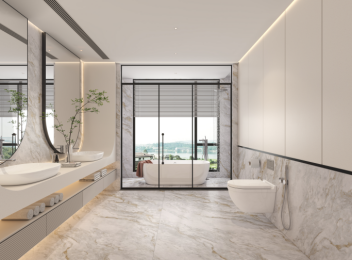 通過精巧的造型規(guī)劃、燈光布局與收納、展示功能等進行整合,流暢的空間布局和奢石應用完美融合,規(guī)整的比例線條,也讓衣帽間擁有美妙的律動節(jié)奏。衛(wèi)浴空間布局合理又貼心,整體干凈純粹,推拉門隔離干濕區(qū),洗手臺和淋浴區(qū)采光都滿足,實用又美觀,采用奢石材質,重組成一個充斥著個人情緒的靜謐空間。