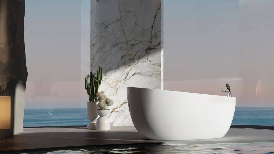 創新升級金屬、磨砂、抗菌、內嵌紋理等不同工藝與質感的亞克力衛浴產品,并且與多品類結合,應用于無縫拼接臺盆、雙色拼接浴缸等。