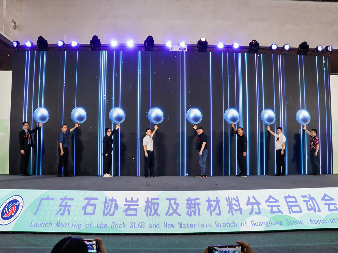 隨后,八位領導嘉賓上臺啟動,正式宣布了廣東石協巖板及新材料分會正式啟航。