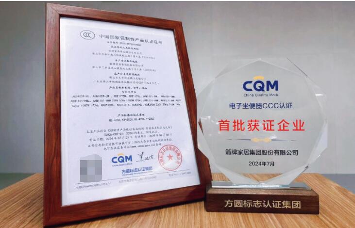 7月10日,由中國質量認證中心(CQC)召開的電子坐便器CCC認證業務交流會暨首批頒證會在北京舉行。箭牌家居憑借在質量管理模式上不斷創新,成為行業首批電子坐便器國家CCC認證的企業,本次“國字號”質量服務機構認證代表著箭牌家居產品品質、質量達標的電子坐便器品質標桿風向標。