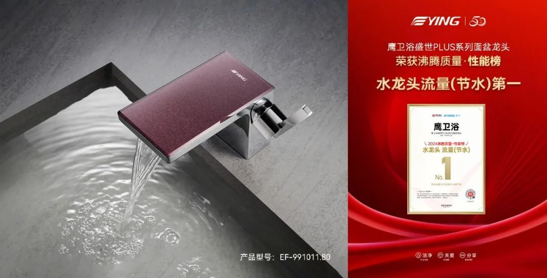 鷹衛(wèi)浴盛世系列面盆龍頭,創(chuàng)新性地采用寬幅瀑布水設(shè)計,通過更寬的出水和清洗范圍,帶來更舒適和潔凈的體驗。在性能上,鷹衛(wèi)浴盛世系列龍頭在本次沸騰杯參評產(chǎn)品的流量(節(jié)水)檢測中排名第一,讓用戶能同時享受舒適體驗和環(huán)保節(jié)水雙重優(yōu)勢。