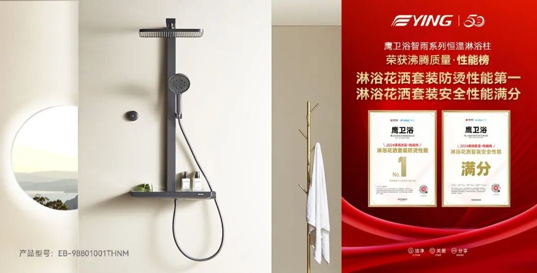 鷹衛(wèi)浴智雨系列恒溫淋浴柱,內(nèi)置恒溫閥芯,精準(zhǔn)掌控沖淋溫度,時刻溫暖守護,在本次沸騰質(zhì)量測評中,這款產(chǎn)品同時獲得了防燙性能第一和安全性能滿分,盡顯實力!